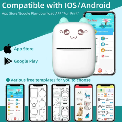 This portable thermal printer supports photo, label, card, document, and web printing, making it perfect for home, study, office, or travel use.